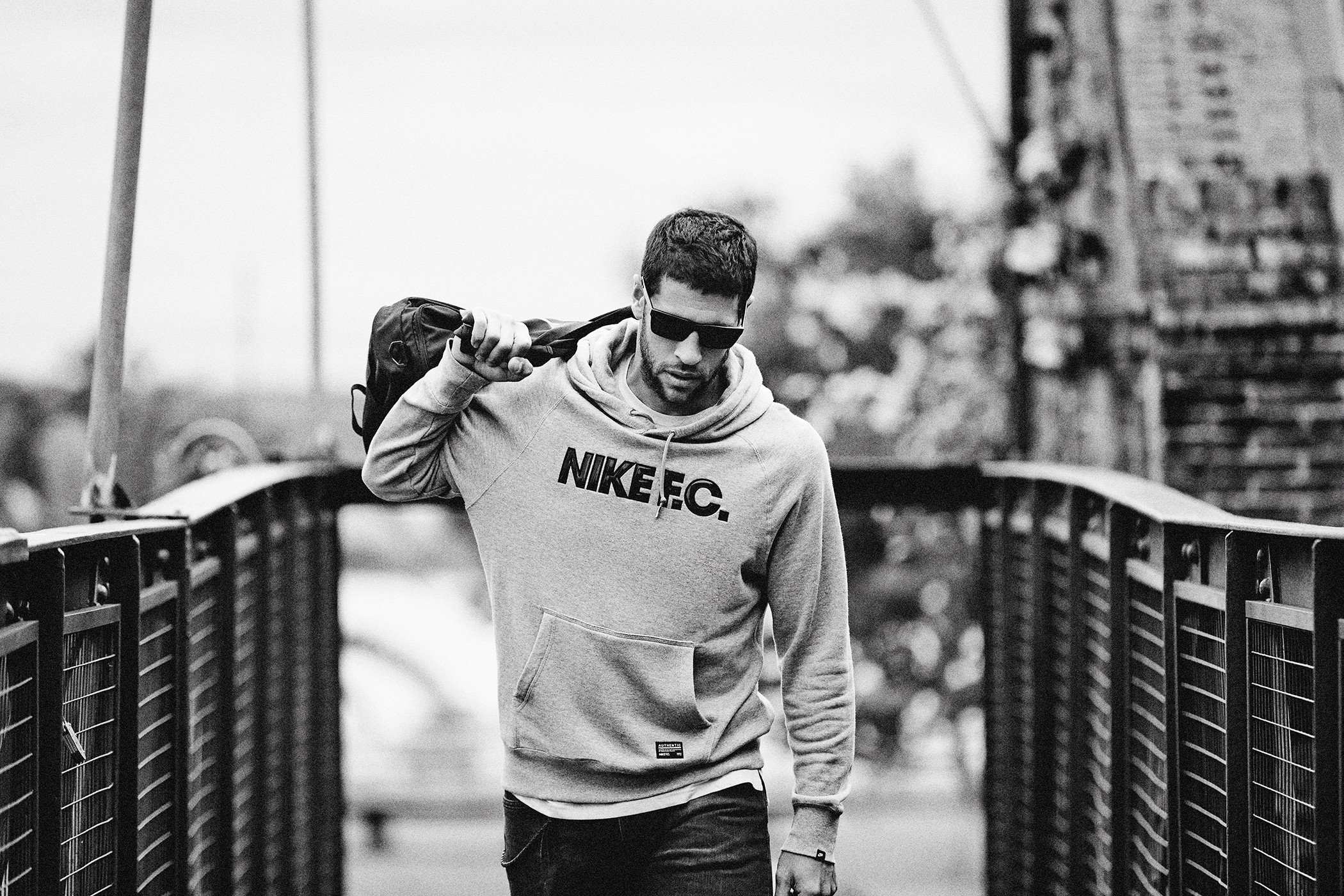 Nike campaign featuring football players Manuel Lanzini, Giovanni Simeone and Sebastián Domínguez. The main challenge was to recreate the black and white aesthetic of Nike FC around the world, using other images from the global campaign as references. The retouching also involved light skin retouching, cleaning the outfits and backgrounds and removing distracting elements.