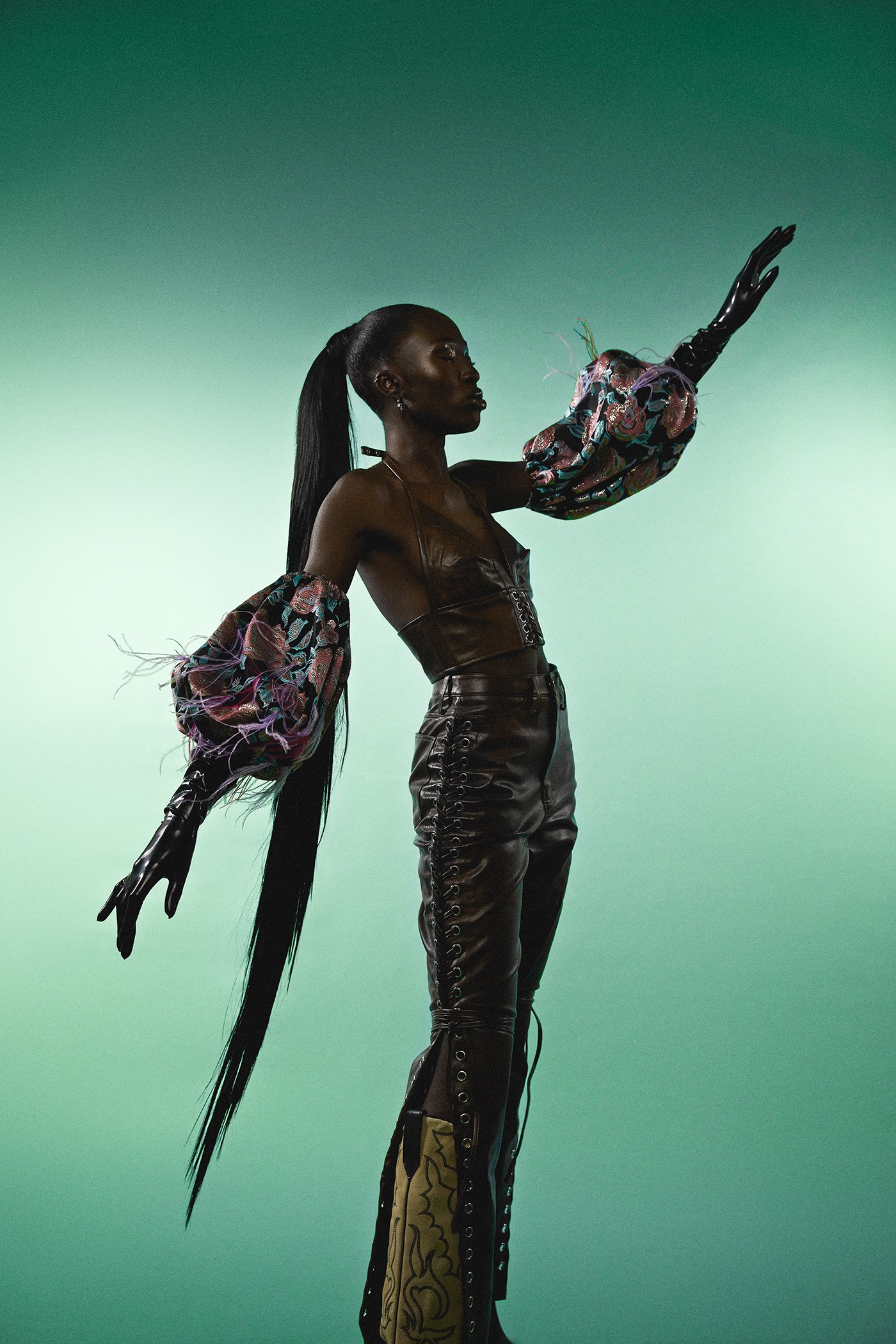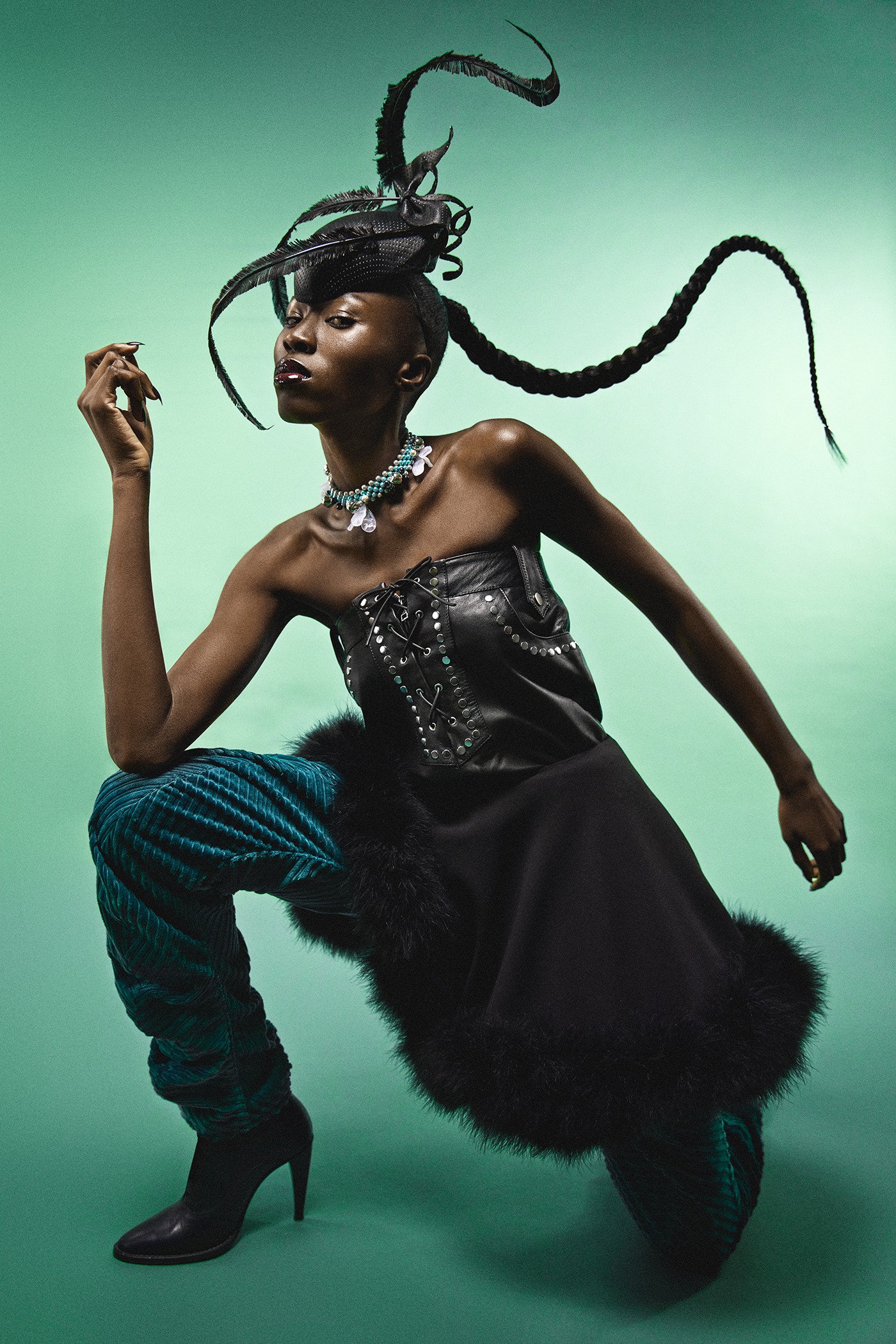 This editorial for Kaltblut Magazine had a strong focus on skin retouching and color grading. The images were shot against a light green backdrop, and part of the challenge was to shift the tone to this much darker, colder and desaturated shade of green without leaving significant traces on the edges or skin, especially in the pictures featuring feathers or flowing hair. Photographer: Emma Šukalić Creative direction and styling: Adam Duong Hair and makeup: Malin Wallin Model: Haddy Ceesay Post production: Gonzalo Ponce