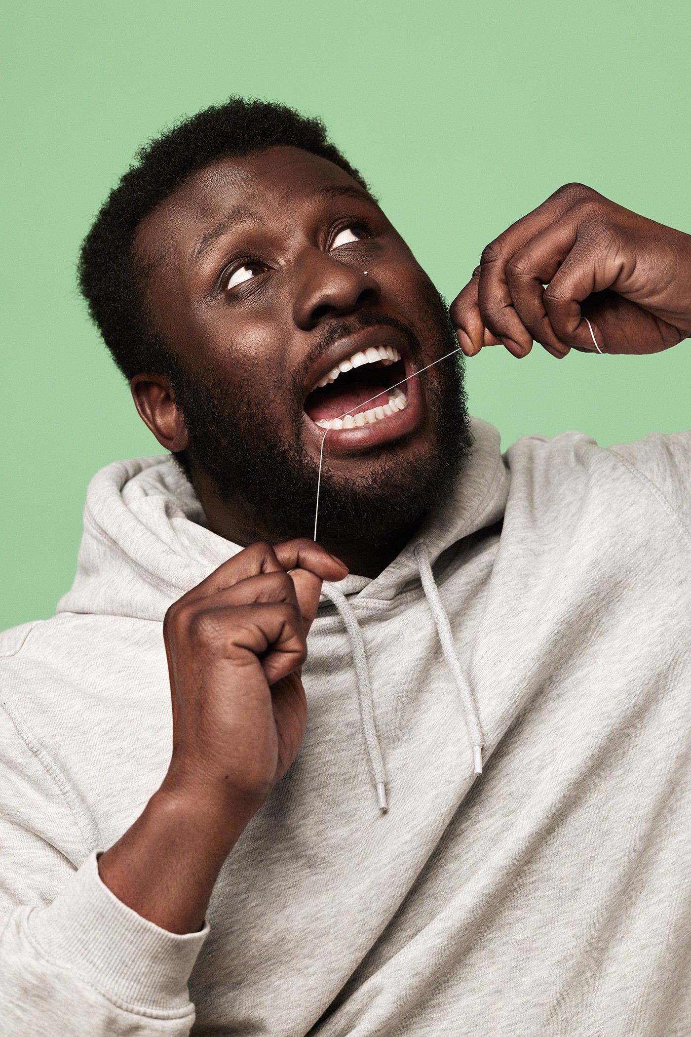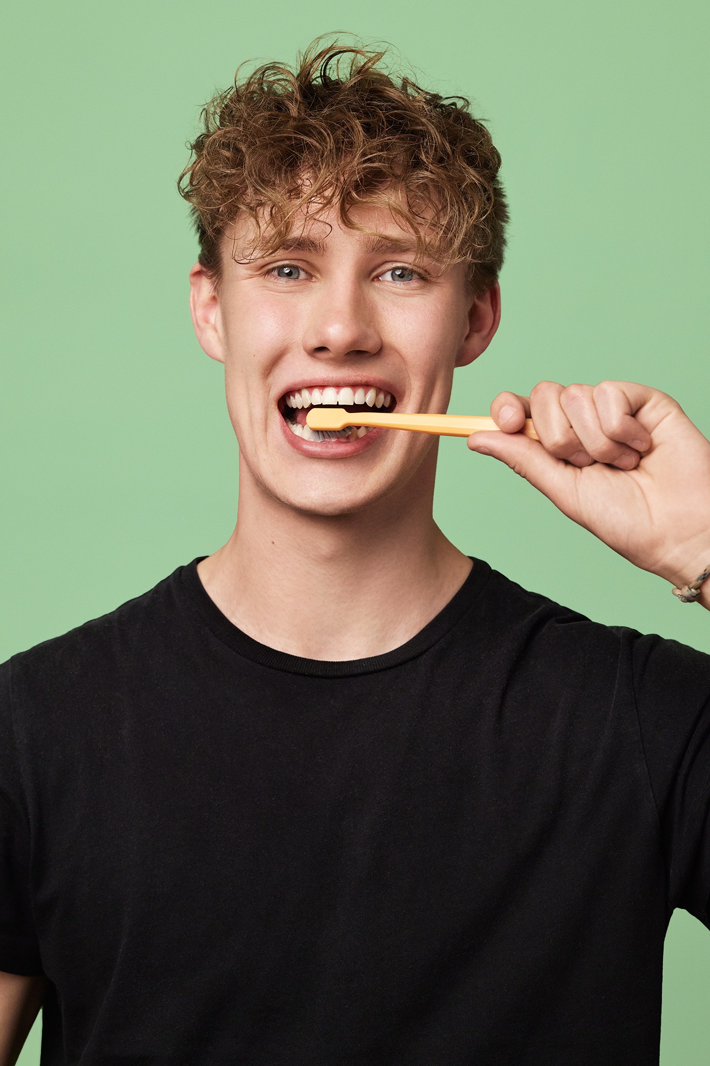 Advertising campaign for Oris Dental. The retouching process involved cleaning up skin, hair, and clothing, balancing skin tones, and ensuring consistent color grading across all images. Backgrounds were replaced with specific colors in accordance with the brand guidelines.